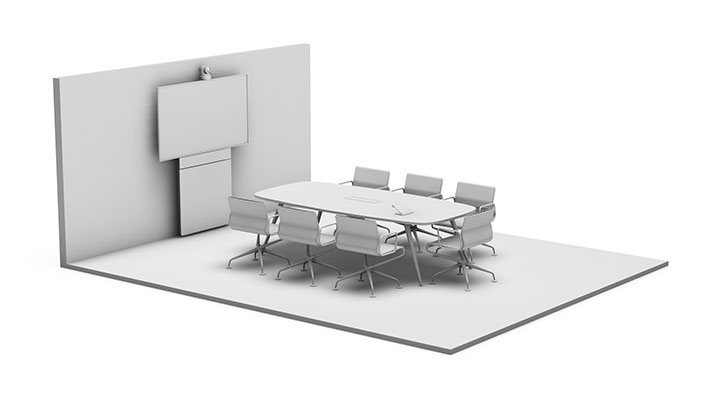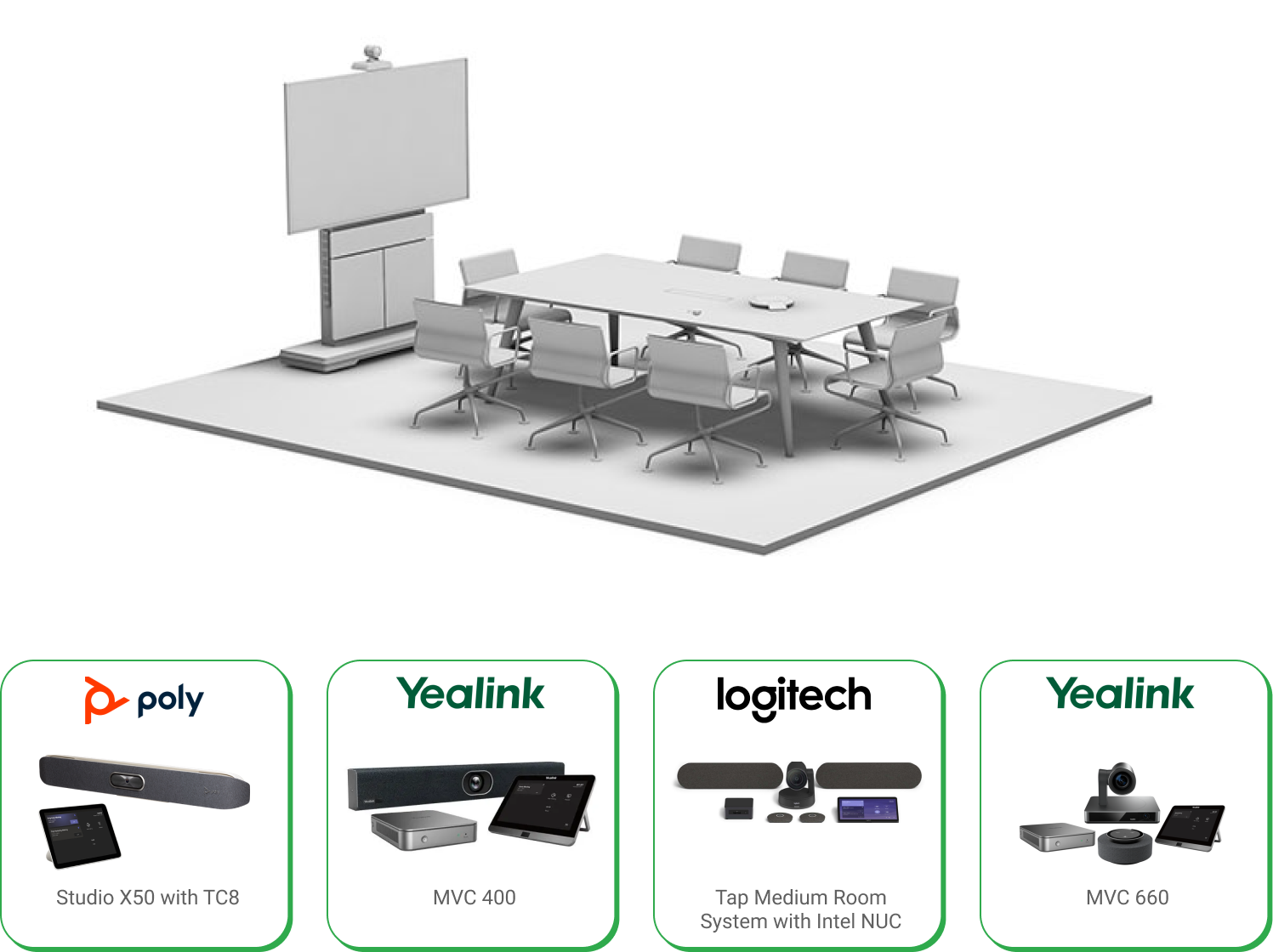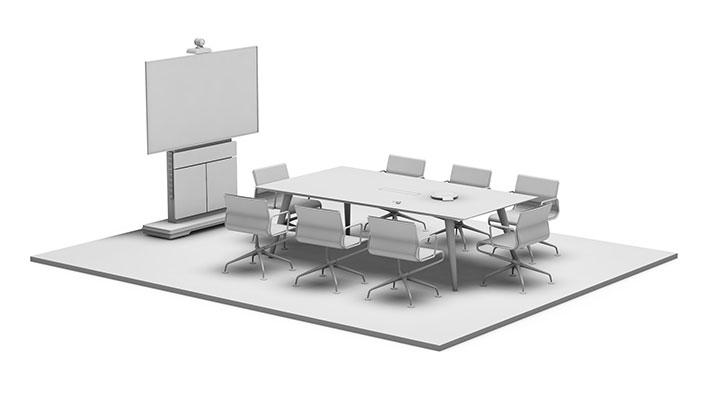 Versatile mid-sized conference room: 8 to 10 chairs, perfect for small groups to collaborate effectively. Ideal for the hybrid workplace, enabling seamless transitions between home and office.